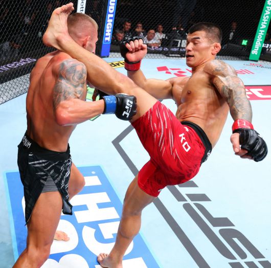 고석현이 엘리엇을 킥으로 공격하고 있다. 사진 | UFC |