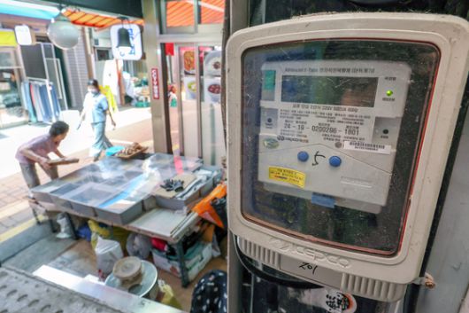 18일 서울의 한 전통시장 상점에 전기계량기가 설치돼 있다. 뉴스1 |