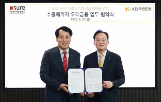 국민은행과 무역보험공사는 지난 20일 서울 여의도 국민은행 본사에서 '중소·중견기업 수출입 활성화를 위한 업무협약'을 체결했다. 협약은 국민은행과 무역보험공사가 상호협력해 국내 경제의 주축인 중소·중견 수출입기업을 지원하고 지속가능한 성장과 상생, 수출 주도형 경제 회복을 도모하고자 마련됐다. 협약식에는 장영진 무역보험공사 사장, 이환주 국민은행장 및 양사 관계자가 참석했다.
