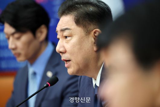 김병기 더불어민주당 대표 직무대행 겸 원내대표(가운데)가 지난 20일 국회에서 열린 최고위원회의에서 발언하고 있다. 박민규 선임기자 |