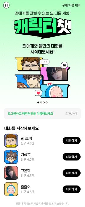 네이버웹툰은 인공지능(AI) 기반 채팅 서비스 '캐릭터챗'이 누적 메시지 1억 건을 돌파했다. |