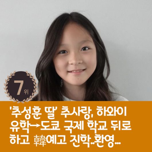 7위 : '추성훈 딸' 추사랑, 하와이 유학→도쿄 국제 학교 뒤로 하고 韓예고 진학