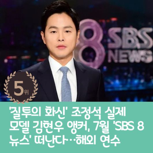 5위 : '질투의 화신' 조정석 실제 모델 김현우 앵커, 7월 'SBS 8 뉴스' 떠난다…해외 연수