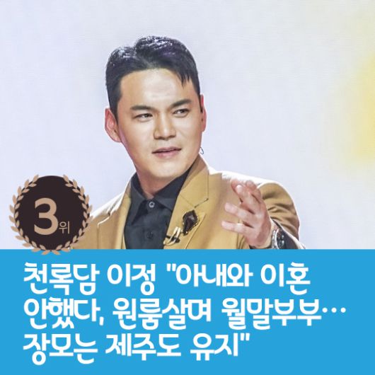 3위 : 천록담 이정 "아내와 이혼 안했다, 원룸살며 월말부부…장모는 제주도 유지"