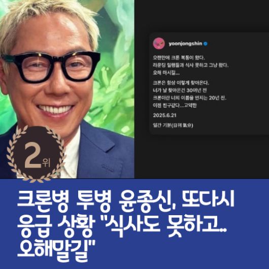 2위 : 크론병 투병 윤종신, 또다시 응급 상황 "식사도 못하고..오해말길"