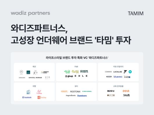 소강섭 와디즈파트너스 대표는 "타밈은 국내 2조 원 규모의 여성 언더웨어 시장에서 기술력과 디자인 혁신으로 팬덤을 빠르게 형성하고 있는 유망 브랜드"라며 "앞으로도 잠재력이 높은 로컬, 라이프스타일 브랜드를 중심으로 적극적으로 투자해 나가고, '라이콘' 분야에서 더 많은 성공사례를 만들어갈 계획"이라고 말했다.