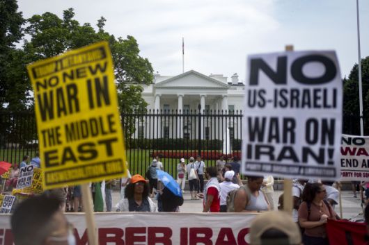 22일(현지시간) 백악관 앞에서 사람들이 이란과의 전쟁 반대 시위를 벌이고 있다. 워싱턴D.C./UPI연합뉴스 |