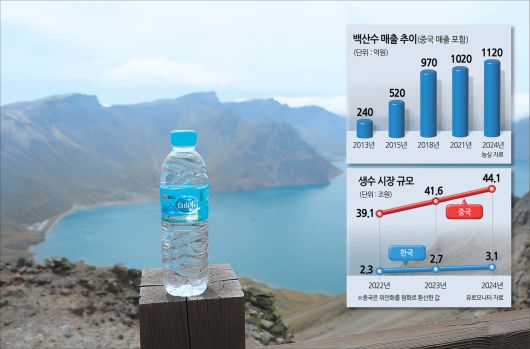 백두산 천지와 백산수 제품 [농심 제공] |
