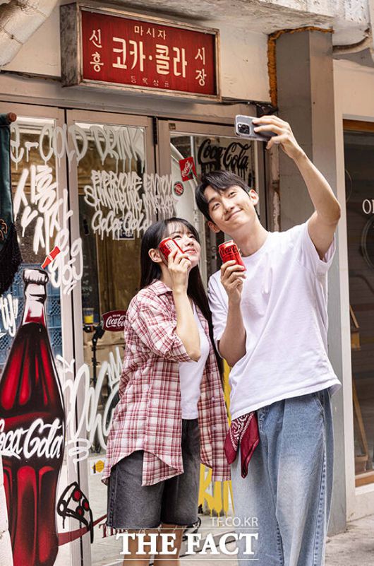 [더팩트ㅣ서예원 기자] 한국 코카-콜라가 23일 오전 서울 용산구 이태원동 해방촌 신흥시장 내 오리올 남산유원지점에서 '코카-콜라 X 신흥시장 프로젝트'를 선보이는 가운데 모델들이 포즈를 취하고 있다.