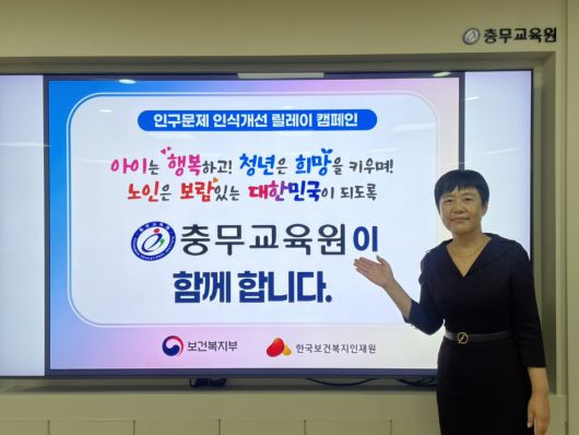 충무교육원 정희순 원장이 인구문제 인식개선 릴레이 캠페인에 동참하고 있다. |