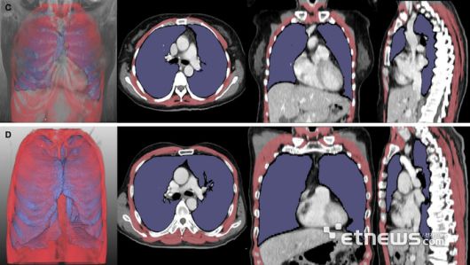 연구팀은 이러한 문제를 해결하고자 딥러닝 소프트웨어를 활용해 흉부 CT 영상에서 폐와 호흡근 부피를 수치로 산출(LVI, RMI)하고 이를 분석했다. 루게릭병 환자 261명의 흉부 CT를 분석해 진행됐으며, 폐·호흡근 용적 지수가 병기가 진행될수록 유의미하게 감소하는 것이 확인됐다. 이 지수들이 낮은 환자군은 기관절개술을 받거나 사망에 이르는 시점이 빠른 경향을 보였다.