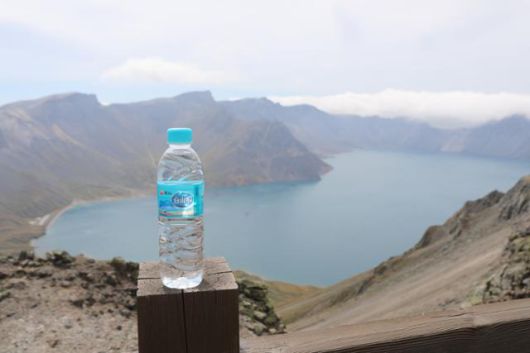 농심 백산수가 백두산 천지에 놓여 있다. 농심 제공 |