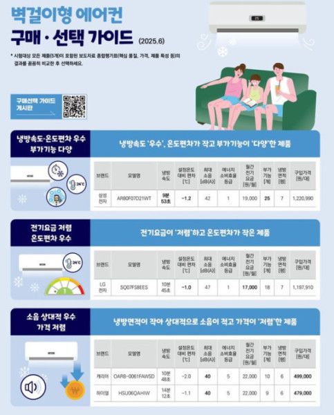 소비자원은 "벽걸이형 에어컨은 사용할 설치 공간의 면적 등을 고려해 냉방성능⋅소음⋅에너지비용 등을 비교한 후 선택하는 것이 바람직하다"고 밝혔다.