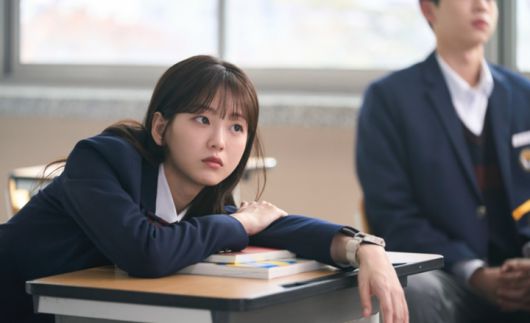 다른 스틸에서는 교복을 입고 평범한 고등학생의 일상을 살아가는 박성아의 모습이 눈길을 끈다. 수업 중 졸고 있던 박성아는 '전학생'으로 등장한 배견우를 보고 깜짝 놀란다.