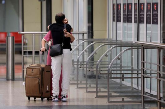23일 새벽, 프랑스 파리 남부 오를리공항에 도착한 한 여성이 따뜻한 환영을 받고 있다. 이 여성은 이스라엘에서 요르단 암만으로 이동한 후 프랑스 국민을 위한 송환 항공편을 이용했다. 현재 이스라엘 영공이 폐쇄된 상황에서, 세계 각국 정부는 이스라엘-이란 간 분쟁에 휘말린 자국민들을 인근 국가를 통해 긴급 대피시키고 있다. AFP연합뉴스 |