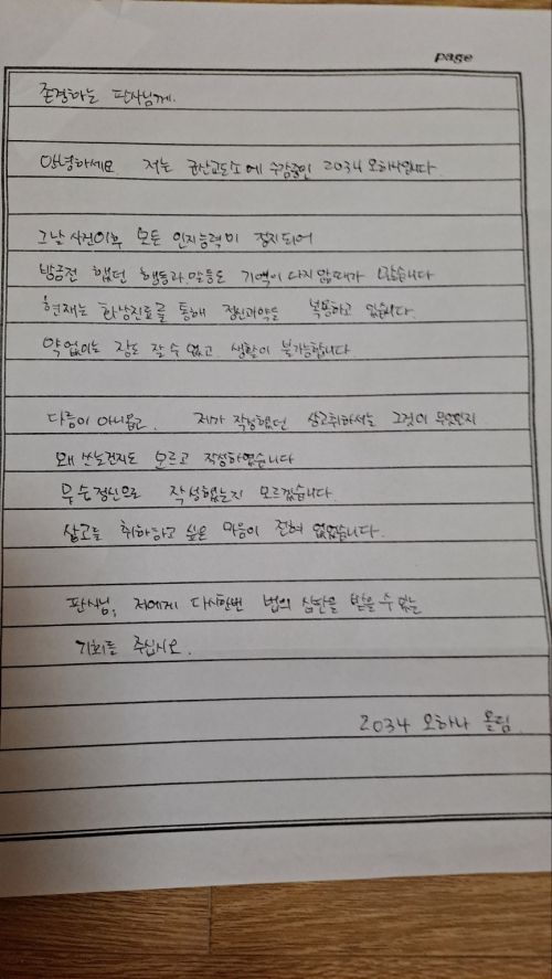 A씨도 편지를 통해 다시 재판받고 싶다는 의사를 전달했다.