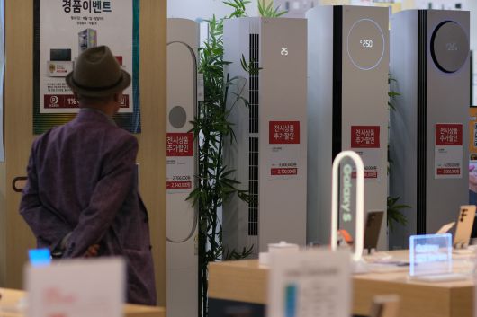 서울 시내 대형마트에서 한 시민이 에어컨을 살펴보고 있다. [연합] |