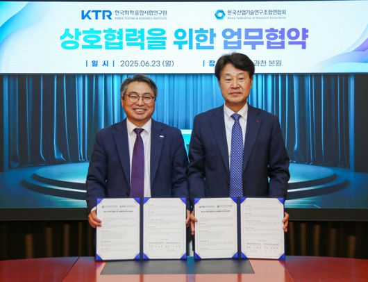 KTR은 김현철 원장과 산업기술연구조합연합회 김진우 회장이 23일 과천 KTR 본원에서 업무협약을 체결했다고 밝혔다. 두 기관은 국가 R&D 공동기획 및 수행, 시험·인증·표준 협력, 중소기업 기술혁신 지원 등을 공동 추진하기로 했다. 연구조합연합회는 2016년 설립된 과학기술정보통신부 산하 비영리단체로 국가 R&D 시스템의 효율적 운영을 위한 연구조합 연합체다.