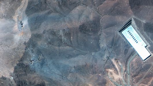 22일(현지시간) 이란 곰주(州) 산악지대에 위치한 이란의 포르도 핵시설에 미국의 벙커버스터 폭탄이 뚫고 들어간 구멍들이 남아 있는 모습을 보여주는 미국 위성기업 맥사의 위성사진. EPA=연합뉴스 |