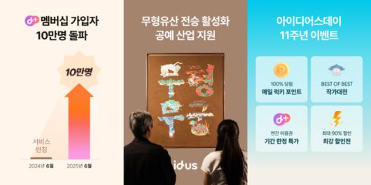 지난해 6월 출시된 d+ 멤버십은 매월 ▲아이디어스 기획전 작품 최대 10% 추가 할인 ▲아이디어스 4000원 할인 쿠폰 ▲텐바이텐 20% 할인 쿠폰 등의 혜택을 제공해 월평균 신규 가입률 20%를 유지하며, 출시 1년 만에 누적 유료 구독자 10만명을 돌파했다고 아이디어스 측은 설명했다.