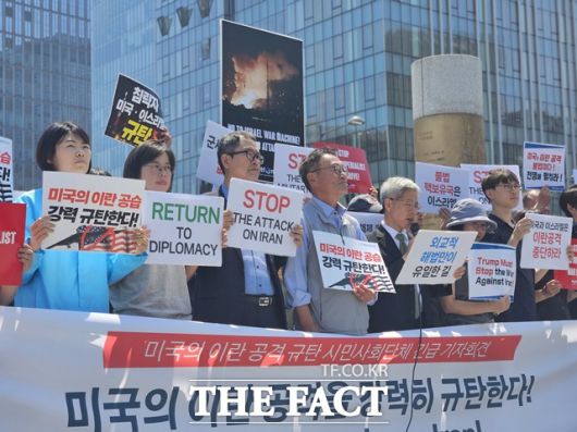 [더팩트ㅣ이다빈 기자] 시민사회단체들은 23일 미국의 이란 핵시설 공격에 "국제법과 유엔 헌장에 명백히 위배되는 침략행위"라고 규탄했다.