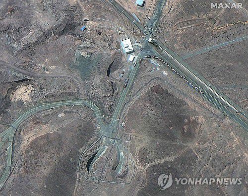 포르도 핵시설 진입로에 늘어선 트럭들 |