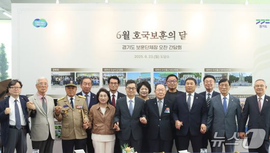23일 오후 도담소에서 열린 경기도 보훈단체장 오찬 간담회에서 김동연 경기도지사와 도내 13개 보훈단체 경기도지부장 등이 기념촬영을 하고 있다.(경기도 제공, 재판매 및 DB 금지) |