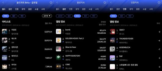 주간 월드차트에서는 아일릿이 글로벌 파워를 자랑했다. 아일릿은 음반 부문에서 높은 점수를 획득하며 1만2074.14점의 월드 지수를 얻었다. 이어 에스파가 월드 지수 1만919.76점으로 2위, 엔하이픈 월드 지수 1만654.33점으로 3위에 자리했다.