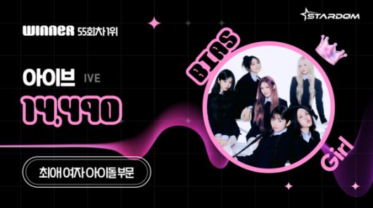 아이브는 6월 셋째주(집계기간 6월 16일~6월 22일) 스타덤 '최애 아이돌' 여자부문 주간랭킹에서 정상에 올랐다. 37주째 1위를 지키던 피프티피프티를 밀어낸 결과다.