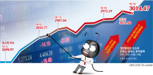코스피가 3년 반 만에 3000선을 돌파한 가운데 개인투자자들은 정작 하락장에 대비한 ‘역베팅’에 나선 모습이다. 이달 들어 인버스와 곱버스 상장지수펀드(ETF)에만 약 5000억 원의 자금이 몰렸고, 미국의 이란 공격 등 중동 전쟁 확산 우려가 커지자 이 같은 흐름은 더욱 강해지고 있다.