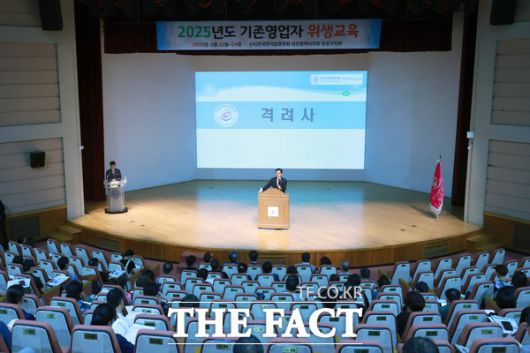 [더팩트ㅣ대전=정예준 기자] 조원휘 대전시의회 의장은 23일 충남대학교 정심화국제문화회관에서 개최된 2025년 일반음식점 기존영업자 위생교육에 참석해 건강하고 바른 먹거리를 위한 외식업 종사자들의 노고에 깊은 감사를 표했다.