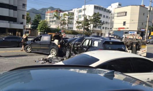경찰에 따르면 사고는 A씨가 몰던 팰리세이드 차량이 앞서 신호대기 중이던 산타페 차량을 추돌하면서 시작됐다. 이어 충격 여파로 앞서 있던 차량 4대가 잇따라 추돌하는 연쇄 사고로 이어졌다.