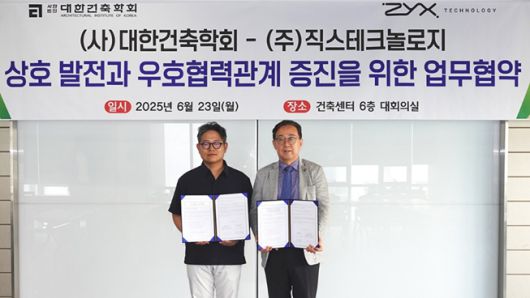 협약식은 서울 서초구에 위치한 대한건축학회 건축센터에서 진행됐다. 현장에는 직스테크놀로지 엄신조 대표와 박진철 대한건축학회 회장을 비롯한 양 기관 관계자들이 참석해 상호 협력의 시작을 공식화했다.