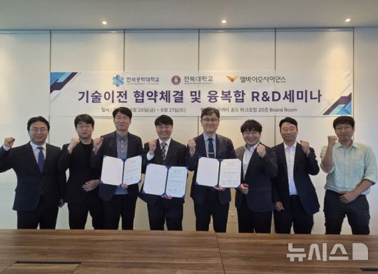 [시흥·안양=뉴시스] 박석희 기자 = 경기 시흥시 한국공학대는 최근 인천 오라카이호텔에서 전북대학교와 공동으로 기술 고도화를 위한 융복합 R&D(연구개발) 세미나를 열고, ㈜엘바이오 사이언스와 1억5000만원 규모의 중대형 기술이전 협약을 체결했다고 23일 밝혔다.