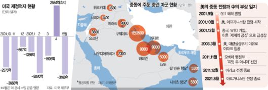 문제는 미국 경제도 전쟁을 감당하기에 역부족이라는 점이다. 미국의 중동전쟁 개입은 불확실성을 키우며 미국 경제의 경로를 더욱 어렵게 할 수 있다. 단적으로 유가 급등은 미국 경제에 심각한 부작용을 안길 가능성이 높다. 유가 급등은 물가 상승으로 이어지는데, 트럼프 대통령의 관세 정책으로 스태그플레이션(물가 상승과 성장 둔화) 경고음이 커지는 미국 경제에는 악재로 작용할 전망이다. 전문가들은 이르면 이달부터 트럼프 행정부가 전 세계를 상대로 부과하기 시작한 상호관세 영향이 미국 물가에 반영될 것으로 보고 있다. 고물가 장기화는 미국 연방준비제도(Fed·연준)의 금리 인하 결정을 어렵게 하고, 고금리는 미국의 경제성장률에 하방 압력을 가하는 악순환으로 이어진다. 여기에다 중동전쟁 장기화로 인한 비용 증가는 미국 경제에 치명상을 안길 것으로 점쳐진다. 지난달 국제 신용평가사 무디스가 미국의 국가신용등급을 한 단계 하향 조정(Aaa → Aa1)할 정도로 미국의 재정적자는 이미 심각한 상황이다. 올 4월 관세 수입 증가로 2584억 달러 일시 흑자를 기록했던 미국 재정적자는 한 달 만에 3160억 달러 대규모 적자로 돌아섰다. 트럼프 대통령과 공화당이 5조 3000억 달러(약 7320조 원) 규모 감세안의 미 상원 통과를 밀어붙이고 있는 상황에서 ‘전쟁 빚’을 더 낸다면 적자는 눈덩이처럼 불어날 수밖에 없다. 미국 의회예산국은 트럼프 행정부의 관세와 감세로 인한 재정적자 축소 효과가 4000억 달러(약 550조 원)로 추정하고 있다. USA 투데이는 “미국의 이란 공격은 더욱 취약해진 미국 경제에 타격을 줄 것”이라고 논평했다.