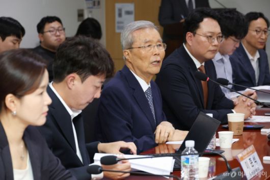 (서울=뉴스1) 이광호 기자 = 김종인 개혁신당 전 상임고문이  23일 오후 서울 여의도 국회 의원회관에서 열린 대선 평가 세미나에서 기념사를 하고 있다. 2025.6.23/뉴스1  Copyright (C) 뉴스1. All rights reserved. 무단 전재 및 재배포,  AI학습 이용 금지. /사진=(서울=뉴스1) 이광호 기자