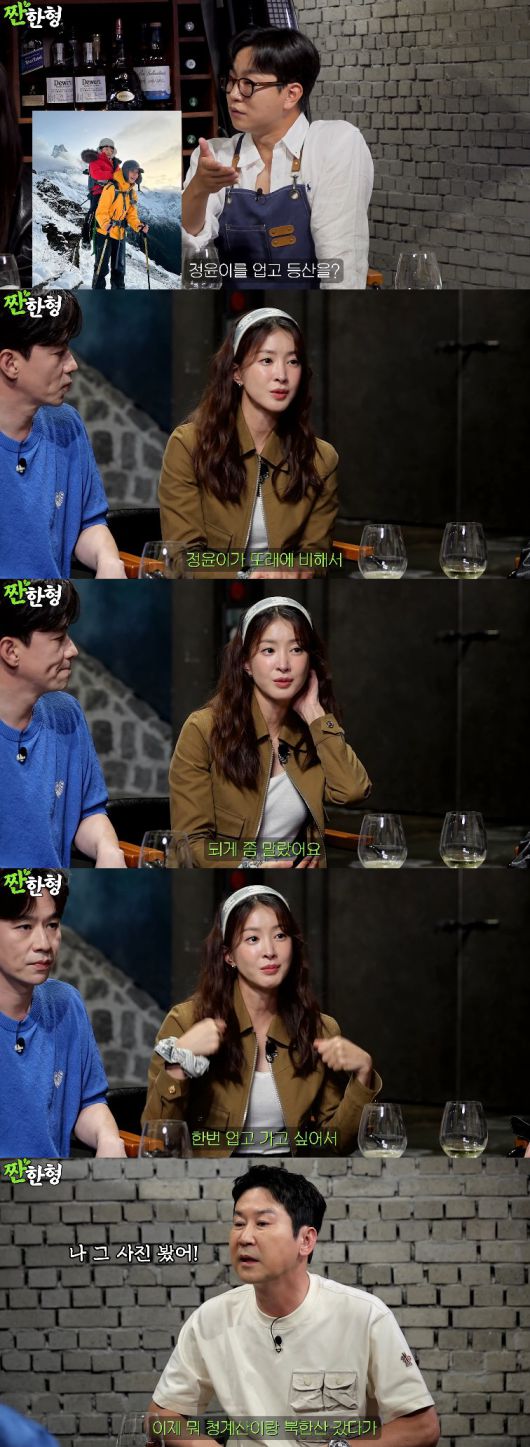 이날 취미와 관련된 토크를 나누던 중, 이시영은 지난해 11월 아들을 업고 히말라야를 등반한 사진이 언급되자 "정윤이(아들)가 또래에 비해서 되게 말랐다. 말라서 가능했던 건데 한번 업고 가고 싶더라. 청계산이랑 북한산 갔다가 히말라야를 한번 같이 가봤다. 마지막이라고 생각하고 저도 한번 해봤다"고 밝혔다.
