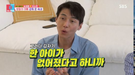 송재희는 "사실 첫째 때도 쌍둥이였다. 앞서서 좋아하는 스타일이 아닌데 그때는 너무 좋았다. 성별도 몰랐는데 혼자서 엄청 상상했다. 그러다 갑자기 한 아이가 없어졌다고 하니까 심장이 멎는 줄 알았다. 그 이야기 듣고 뒤에 가서 엄청 울었다"라며 당시 상황을 회상했다.