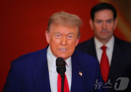 도널드 트럼프 미국 대통령이 21일(현지시간) 미국 워싱턴 DC 백악관에서 이란 핵 시설 공격과 관련한 대국민 연설을 하고 있다. 2025.6.22 ⓒ 로이터=뉴스1 ⓒ News1 송원영 기자 |