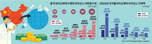 지난해 중국 의약품의 해외 라이선스 아웃(기술 이전) 거래 건수만 124건, 신약 기술이나 파이프라인의 해외 라이선스 계약 건수는 152건이다.