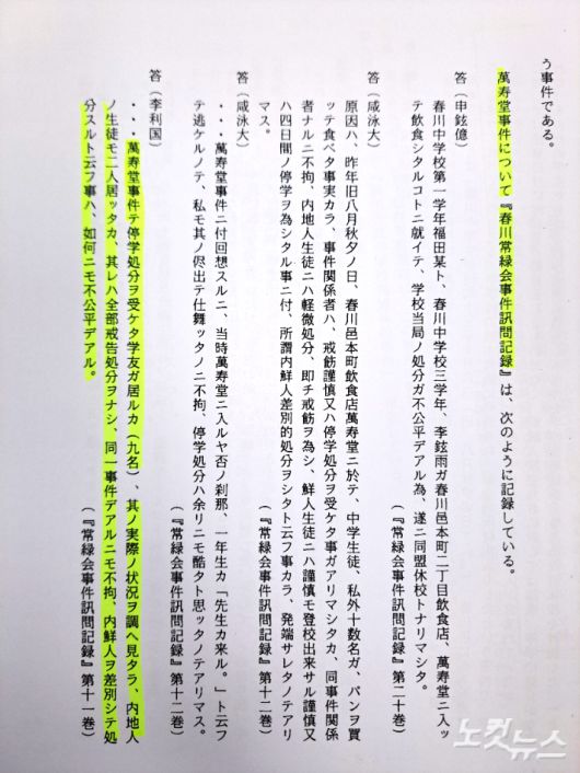강원CBS가 입수한 이누마 히로카즈(飯沼博一) 씨의 <春川常緑会事件硏究>(춘천 상록회 사건 연구) 논문에 따르면 1938년 10월 8일 음력 추석날 '만수당 사건' 이 발생, 이 차별 사건으로 동맹휴교로 이어진 졌다고 쓰여져 있다. 진유정 기자 |