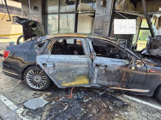 이 사고로 K9승용차 운전자 A(60대)씨가 숨지고 차량과 건물 일부가 타 소방서 추산 2800만원의 재산피해가 발생했다.
