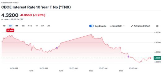 미 국채 10년물 수익률 차트, 자료=야후 파이낸스, 2025.06.24 koinwon@newspim.com |