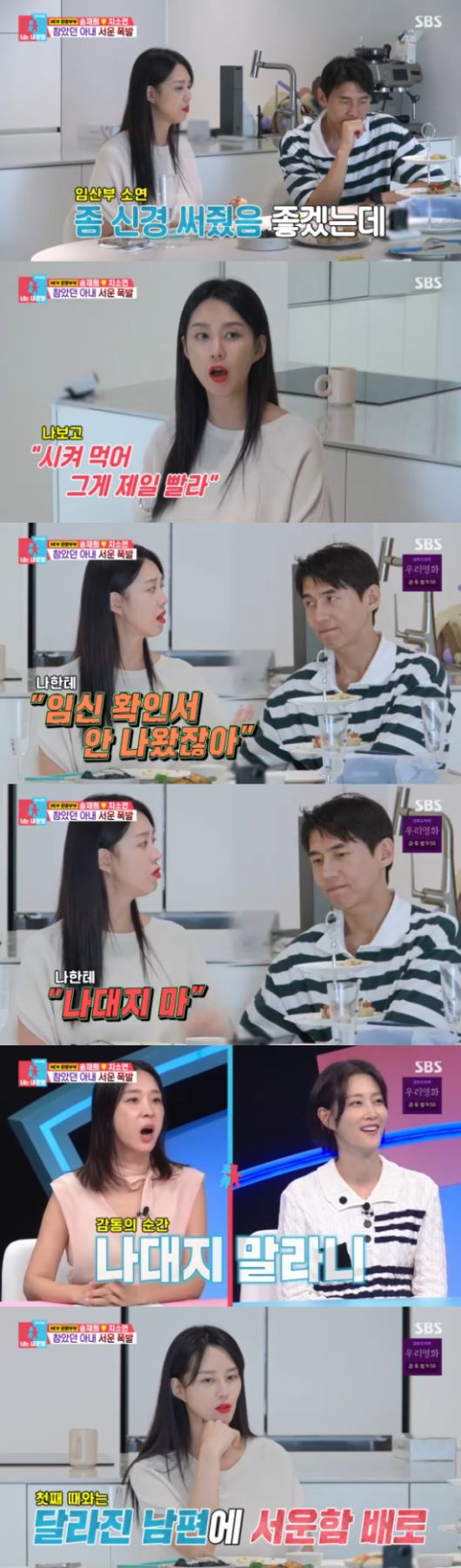 이날 방송에서 지소연은 뱃속 쌍둥이와 태담도 잘 나누지 않고, 자신에게 무관심한 듯 보이는 남편 송재희에게 쌓였던 서운함을 드러냈다.