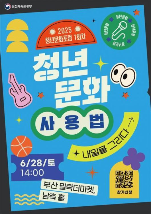문화체육관광부는 오는 28일 오후 2시 부산 수영구 밀락더마켓 남측홀에서 '2025년 제1차 청년문화포럼'을 개최한다고 24일 밝혔다.