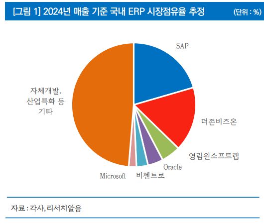 최성환 리서치알음 연구원은 "6월 출범한 이재명 정부는 대기업뿐 아니라 중소기업의 AI 인프라 확충을 국가 성장전략의 핵심축으로 삼고 있다"라며 "더존비즈온은 국내 중소기업 ERP 시장에서 확고한 시장 기반을 지니고 있어 정부 정책과의 높은 정합성을 가지고 있다고 판단한다"라고 전했다.