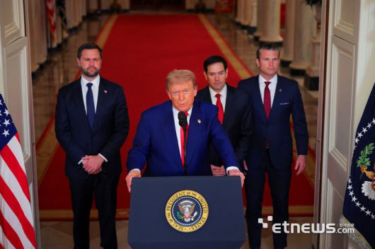 도널드 트럼프 미국 대통령이 21일 미국 워싱턴 D.C. 백악관에서 미국의 이란 핵 시설 공격 관련 대국민 연설을 하고 있다. 로이터 |
