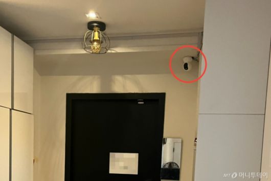 K-POP 아이돌 연수 프로그램에 참여한 외국 국적 여성들이 머물던 서울 마포구의 한 숙소. 숙소 생활공간에 내부를 촬영하는 CCTV(폐쇄회로TV)가 설치된 모습. /사진=B씨 제공. |