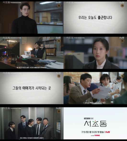 오는 7월 5일 첫 방송될 tvN 새 토일드라마 '서초동'(이승현 극본, 박승우 연출)에서 종합 예고 영상을 공개, 매일 서초동 법조타운으로 출근하는 어쏘 변호사(법무법인에 고용되어 월급을 받는 변호사) 5인방의 일상을 궁금케 하고 있다.