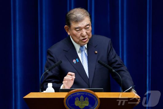 일본 도쿄 총리 관저에서 기자회견하는 이시바 시게루 일본 총리. 2025.06.23. ⓒ AFP=뉴스1 |